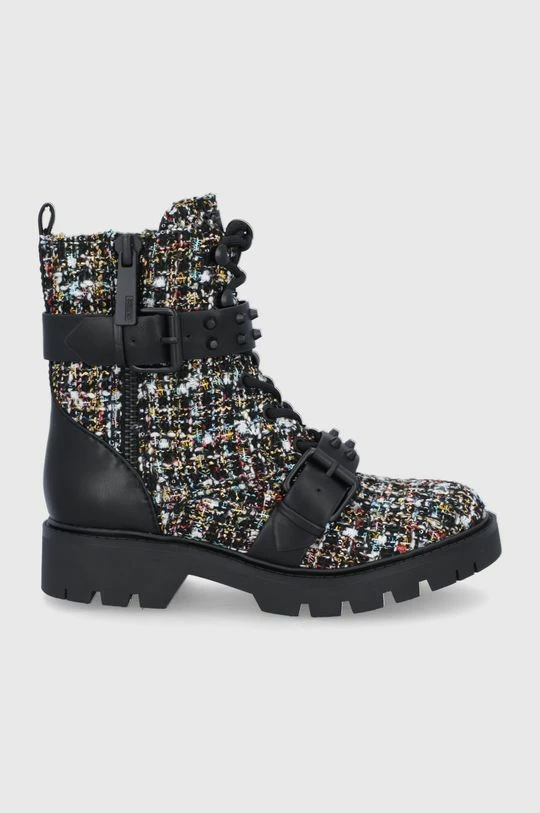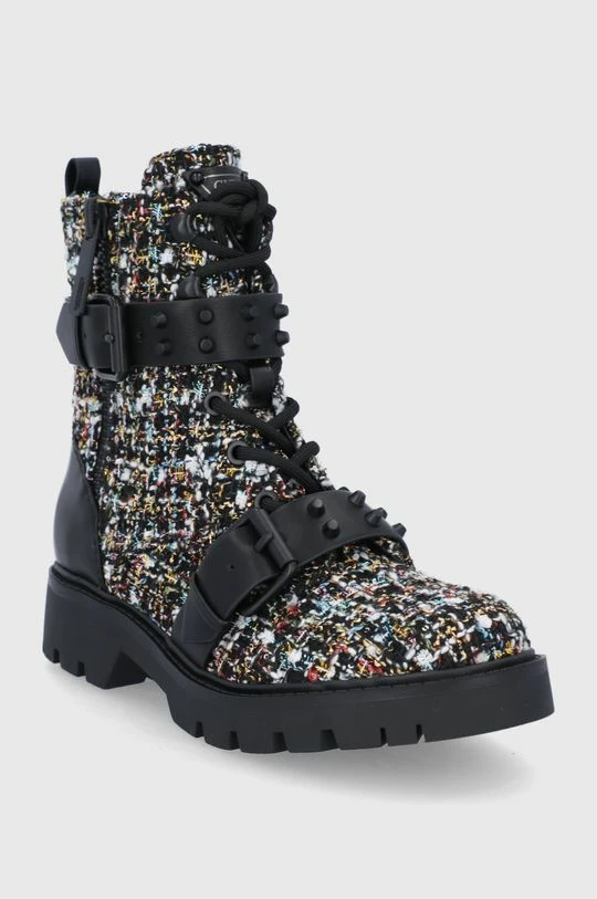Μποτάκια εργασίας από τη συλλογή Guess. Μοντέλο από συνδυασμό υφασμένου υφάσματος και οικολογικού δέρματος.