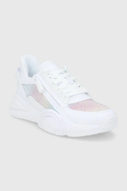 Υποδήματα από τη συλλογή Guess. Μοντέλο από συνδυασμό οικολογικού δέρματος και υφασμένου υφάσματος.