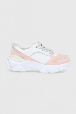 Υποδήματα από τη συλλογή Guess. Μοντέλο από από συνδυασμό οικολογικού δέρματος, υφαντικής ύλης και συνθετικού υλικού.